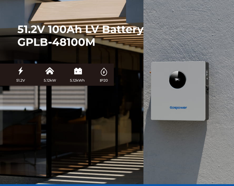 Gospower GPLB-48100M wall mounted lithium battery Support customizing battery voltage, current, capacity, appearance, etc.Provide battery OEM, ODM services.5-year after-sales guarantee, professional technical support.